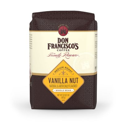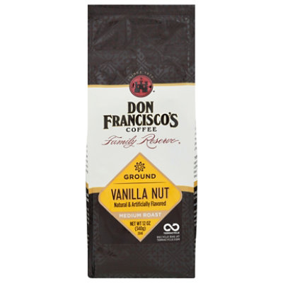 From the iconic creamy smooth vanilla that lingers on the palate to the nutty aroma that perks up your senses Don Franciscos Vanilla Nut flavored coffee is made using 100 Arabica beans and expertly roasted to bring out all of the yummy smooth flavor. Don Franciscos Coffee Family Reserve Coffee Ground Medium Roast Vanilla Nut - 12 Oz. Using pristine 100 Arabica beans each of these coffees are custom roasted in small batches to provide you with the most flavorful coffee you can get your hands on.